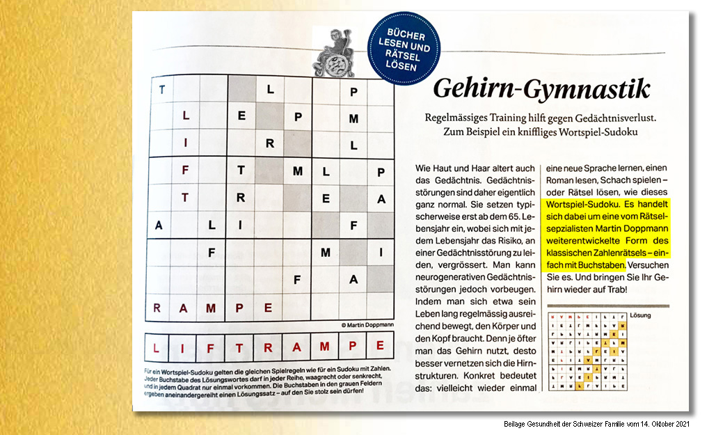 2010 kreierte ich mein erstes Wortspiel Sudoku.