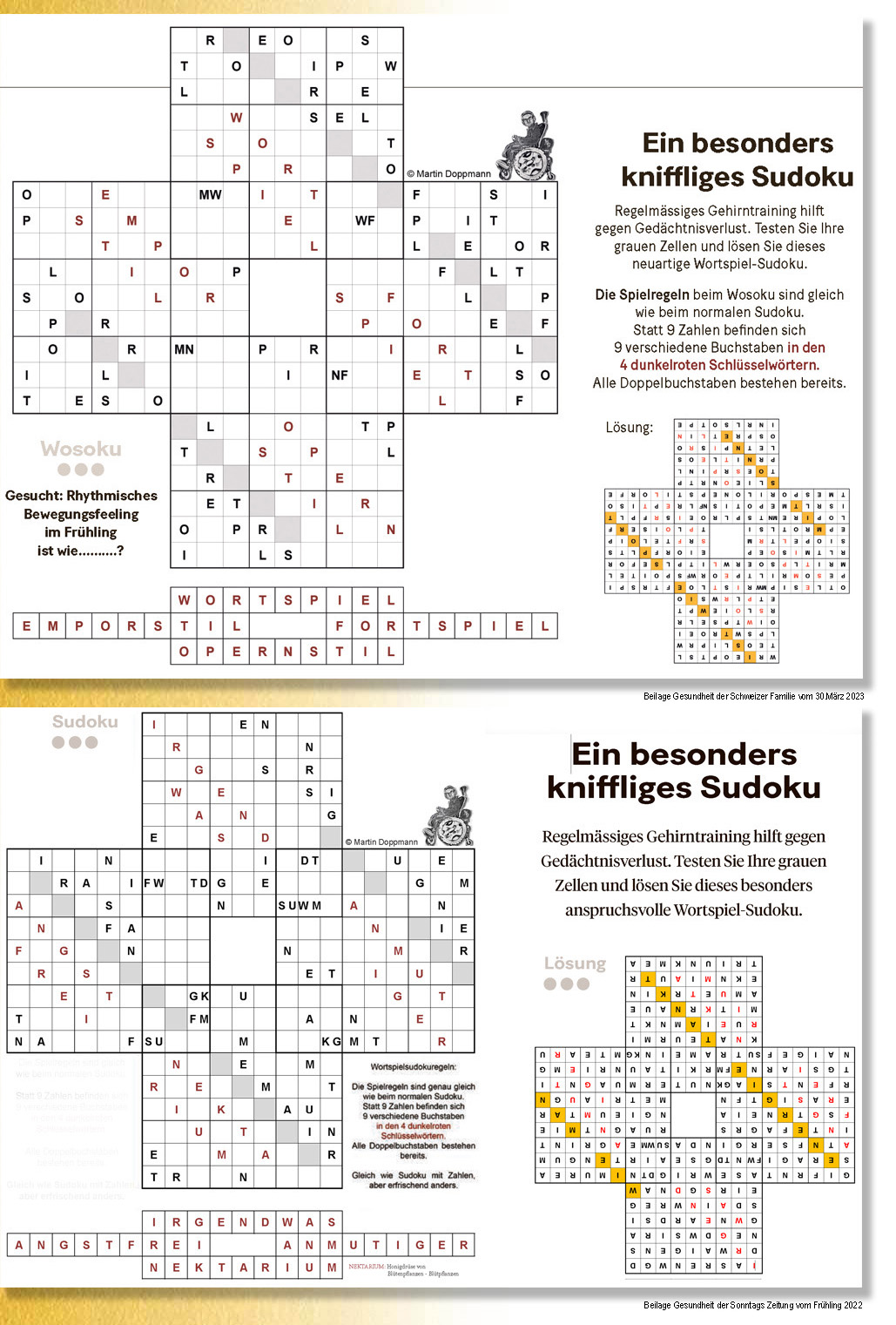 Beispieldoppelseite mit Lösung der vorherigen Seite und dem nächsten Wosoku.